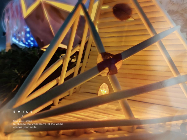 设计灵感来自普希金的“致大海”,正如同诗句“翻滚着蔚蓝色的波浪,和闪耀着娇美的容光。好像是朋友的忧郁的怨诉,好像是他在临别时的呼唤。”这灯笼象征着我们大学时期经久不散的友谊。