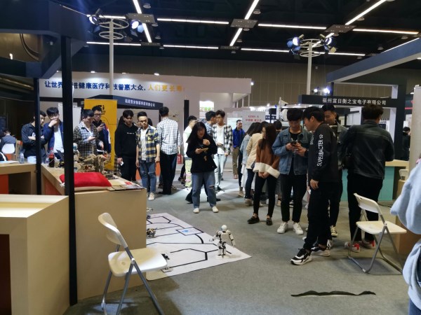 会场人头攒动,同学们一边参观,一边讨论,兴致十分高涨。