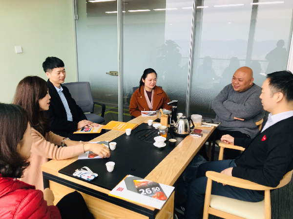 bevictor经理李榕玲、副经理徐颖,福建经济公司教研室主任廖玮与思飞信息科技有限公司副总裁林德志展开对校企合作的探讨。分析了当今社会新媒体时代的特点,教师如何发挥自身优势特点,激励员工发散的思维,激发创意。借助思飞企业资源为员工创造出更广阔的平台,同时鼓励有能力员工创新创业。